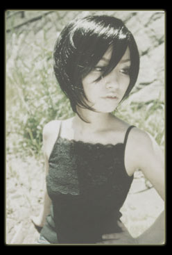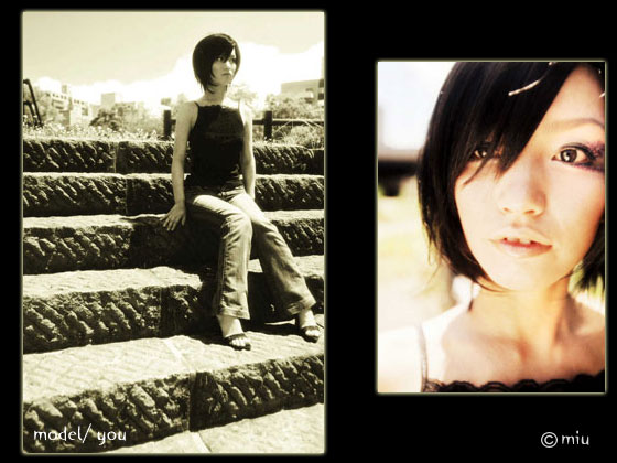 hair: 肩に少しつくくらいの前上がりのマッシュボブをベースにさりげにアシンメトリーを入れたクールなスタイル。。毛先を中心にスライドCutして、全体的に軽くなりすぎない感じがポイント☆カラーは、ツヤ感のあるモカブラックで。。 hair.make.photo// MIU model// you